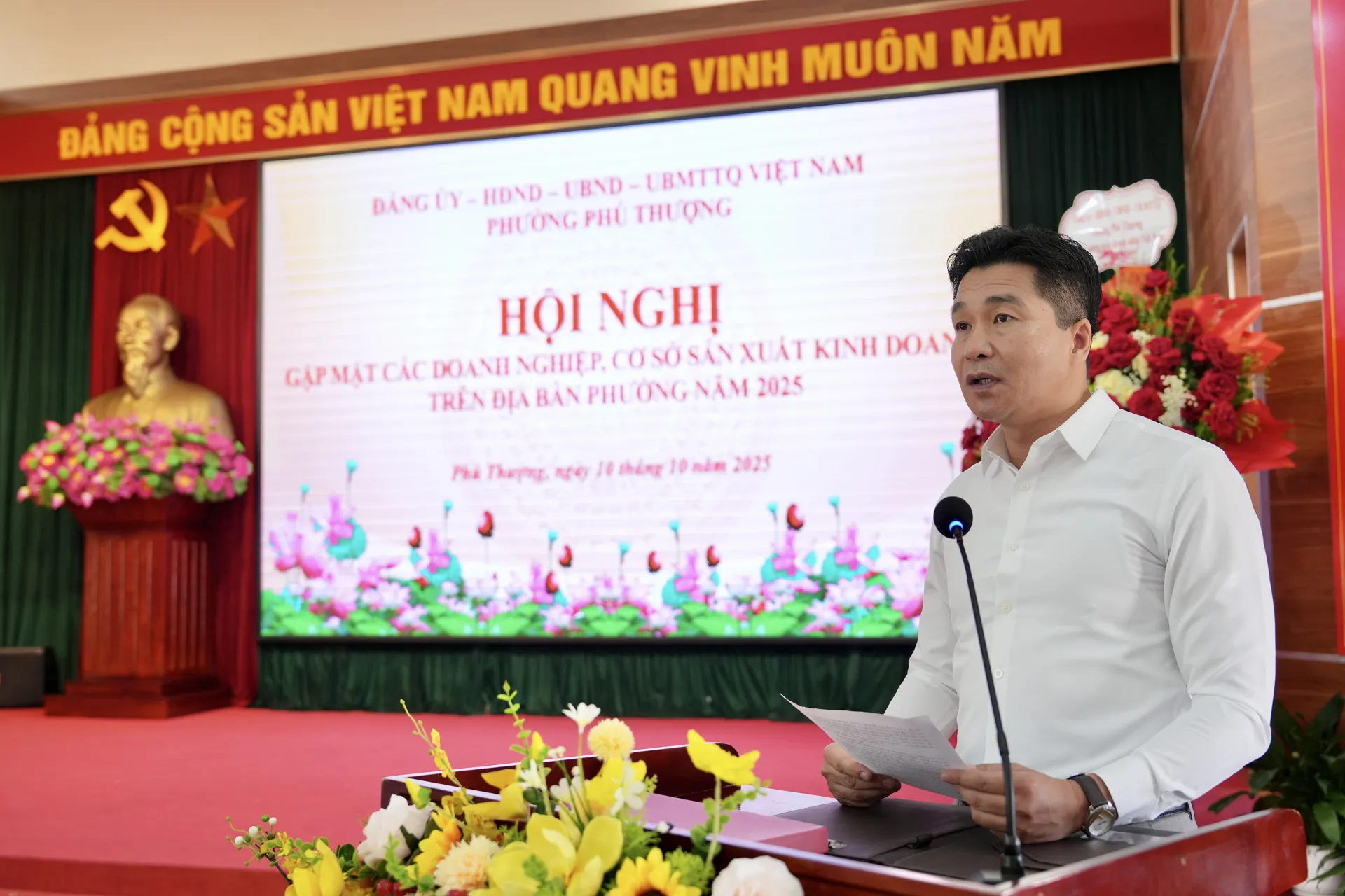 Phát biểu tại buổi lễ, ông Võ Thanh Tùng – Phó Chủ tịch UBND Phường Phú Thượng nhấn mạnh, hội nghị là dịp để chính quyền địa phương lắng nghe tâm tư, nguyện vọng của cộng đồng doanh nghiệp, đồng thời ghi nhận những đóng góp quan trọng của các đơn vị vào sự phát triển chung của phường. Ông khẳng định, Đảng ủy – HĐND – UBND phường sẽ tiếp tục đồng hành, hỗ trợ và tạo điều kiện thuận lợi nhất để doanh nghiệp phát triển, góp phần xây dựng Phú Thượng ngày càng giàu đẹp, văn minh và hiện đại.